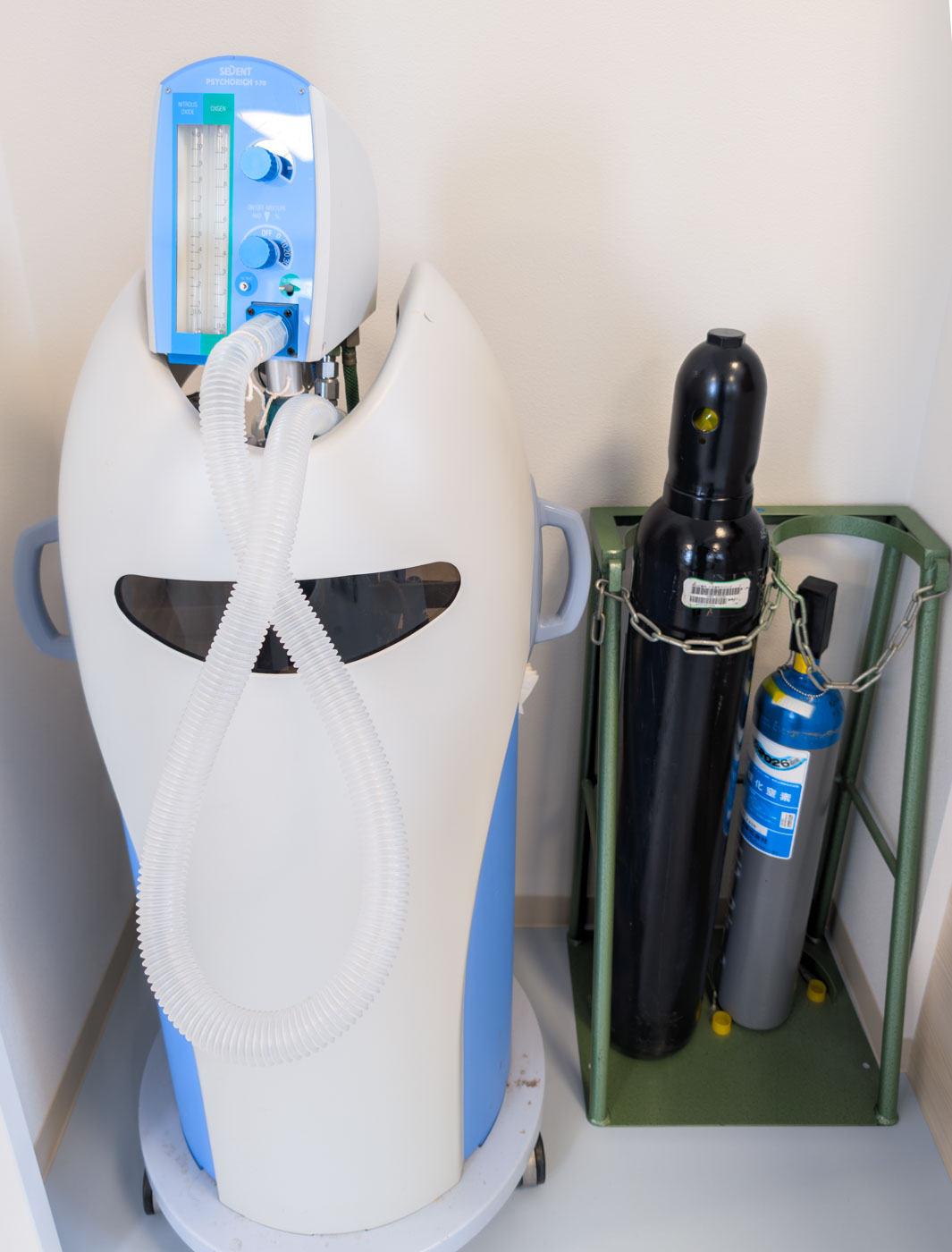 歯科麻酔科専門医と連携し、笑気ガス(鼻から吸引)や静脈内鎮静法(点滴)を行います。麻酔といっても意識はあり、弱い鎮静、睡眠、リラックス状態で治療します。患者さん、歯科医師の双方に安心、安全な治療になります。
